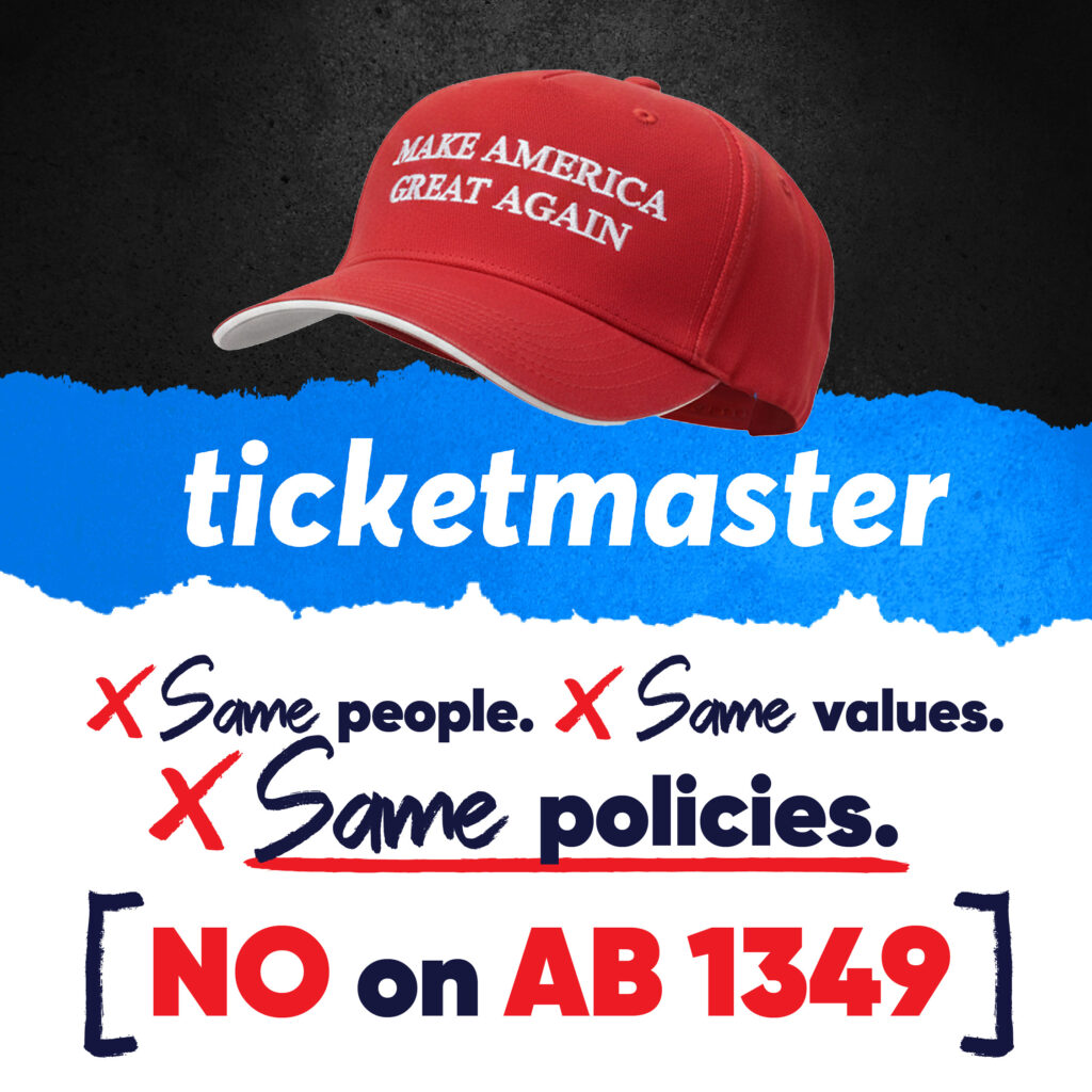 AB 1349 codifies Ticketmaster’s private terms and conditions into state statute, allowing it to restrict or ban ticket transfers and resales, except through its own platform.